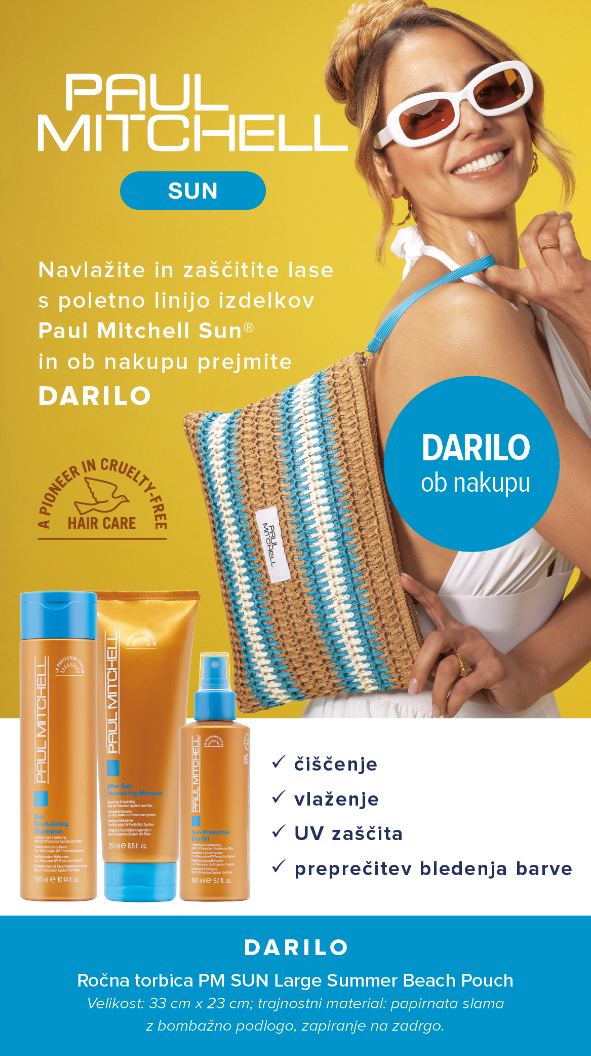 Ker želimo, da bodo vaši lasje v poletnih mesecih deležni najboljše nege, vas ob nakupu vseh treh izdelkov Paul Mitchell Sun v naši spletni trgovini čaka darilo – modna poletna torbica Paul Mitchell.